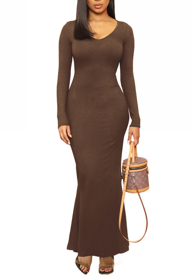 (Real Image)2022 Styles Women Fashion Summer TikTok&Instagram Styles Round Neck Long Sleeve Maxi DressSKU: #OEM5758-4
