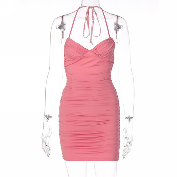 (Real Image)2022 Styles Women Fashion Summer TikTok&Instagram Styles Ruffle Backless Strap Mini DressSKU: #CF22742-1