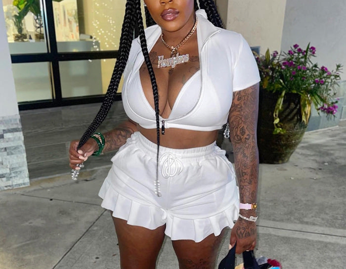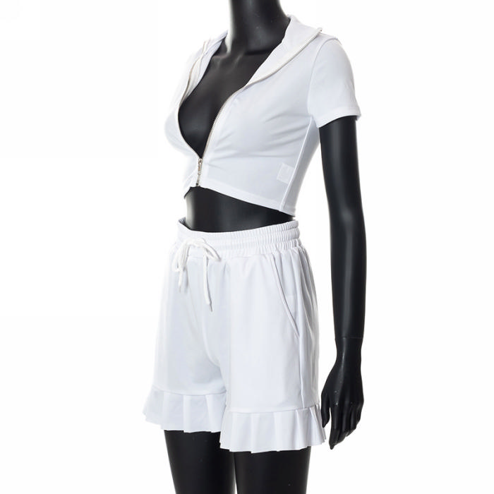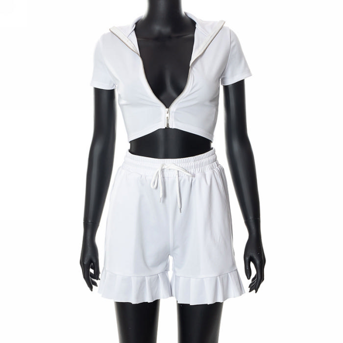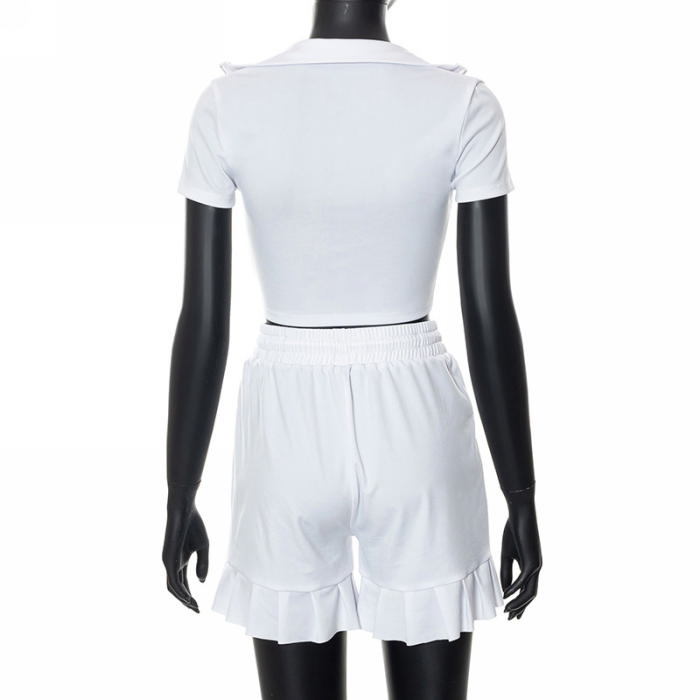 (Real Image)2022 Styles Women Fashion Summer TikTok&Instagram Styles Ruffle Short Two Piece SuitSKU: #CF47155-1