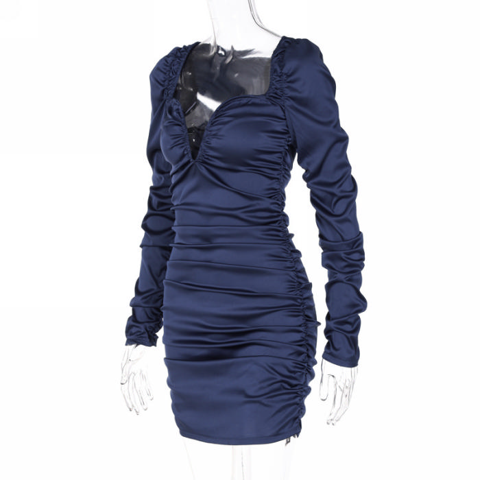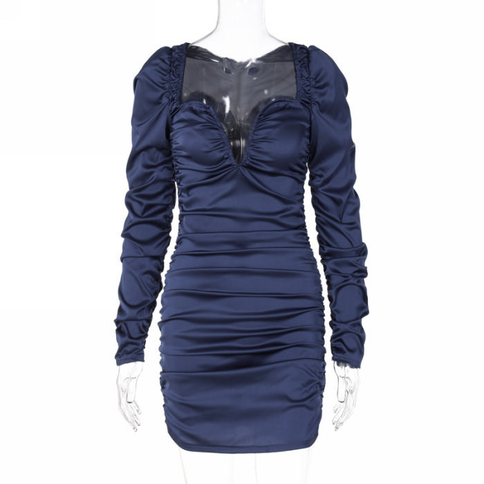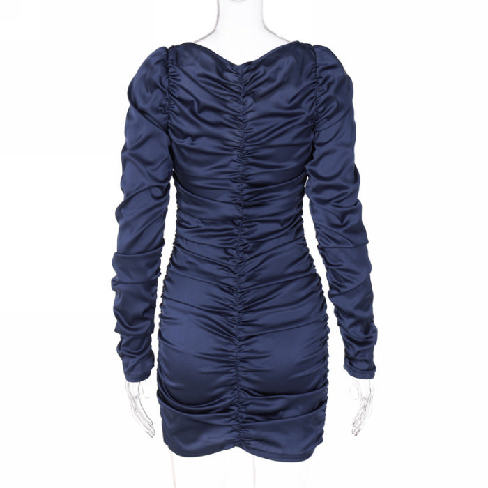 (Real Image)2022 Styles Women Fashion Summer TikTok&Instagram Styles Ruffle Silk Long Sleeve Mini DressSKU: #CF22770-1