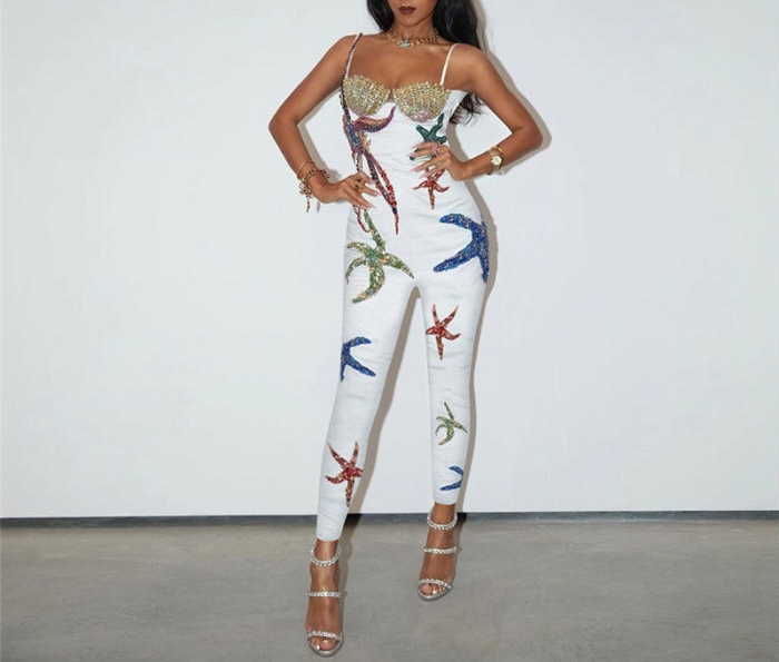 (Real Image)2022 Styles Women Fashion Summer TikTok&Instagram Styles Sequin Strap JumpsuitSKU: #OM0238-1