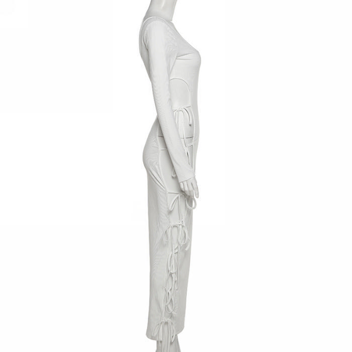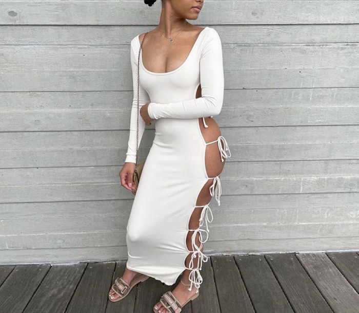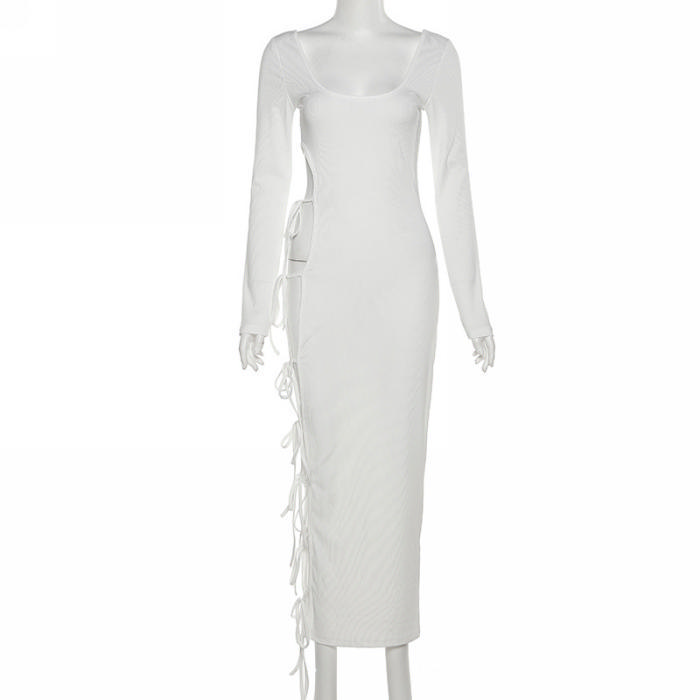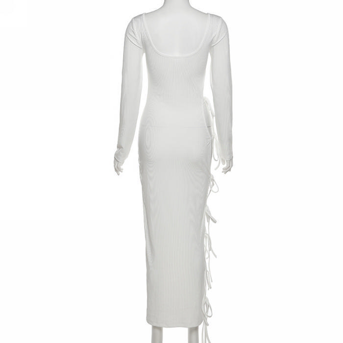 (Real Image)2022 Styles Women Fashion Summer TikTok&Instagram Styles Single Lace Up Long Sleeve Maxi DressSKU: #CF48843-1