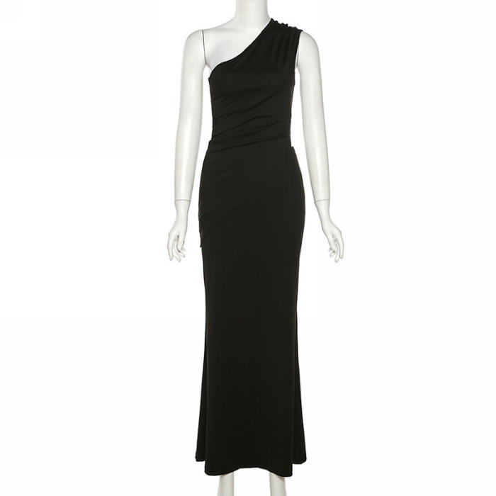 (Real Image)2022 Styles Women Fashion Summer TikTok&Instagram Styles Single Shoulder Maxi DressSKU: #CF48849-1