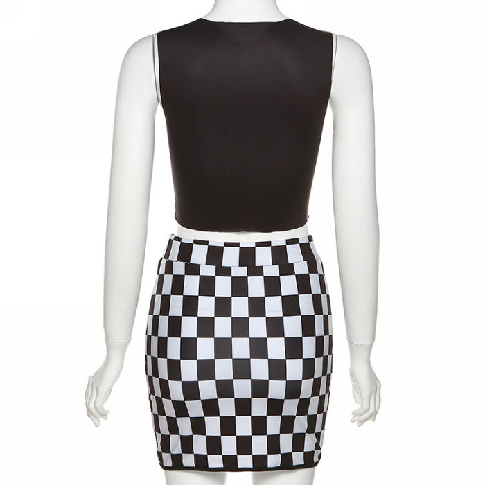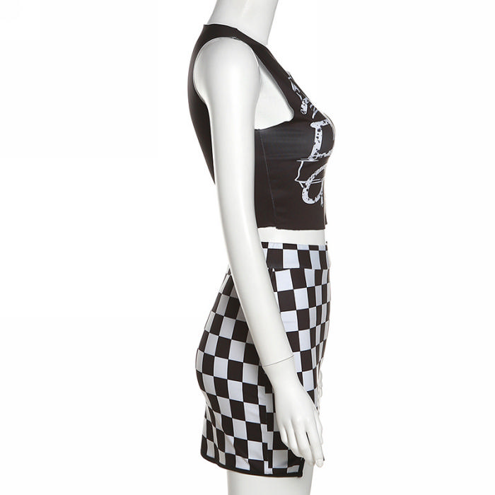 (Real Image)2022 Styles Women Fashion Summer TikTok&Instagram Styles Sleeveless Print Two Piece DressSKU: #CF48786-1