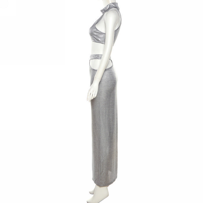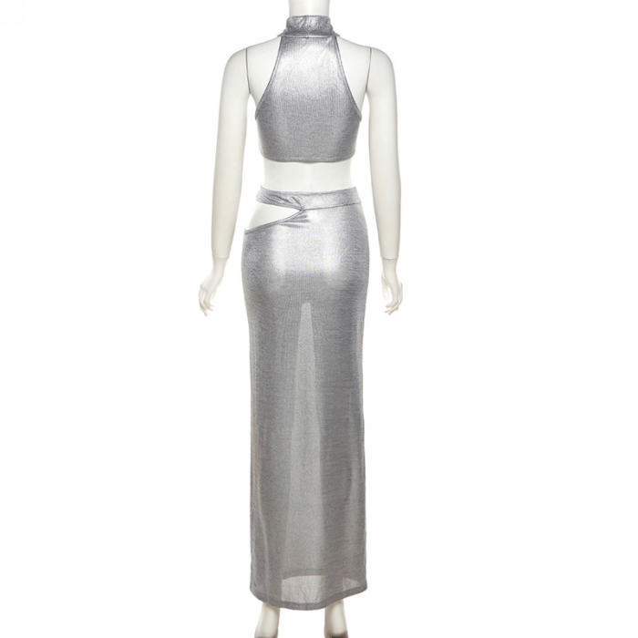 (Real Image)2022 Styles Women Fashion Summer TikTok&Instagram Styles Sliver Maxi DressSKU: #CF48855-1