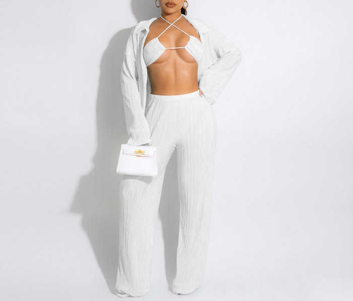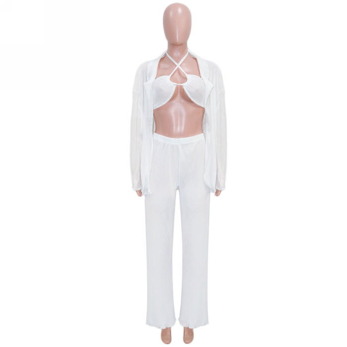 (Real Image)2022 Styles Women Fashion Summer TikTok&Instagram Styles Solid Color 3 Piece SuitSKU: #XF14893-3