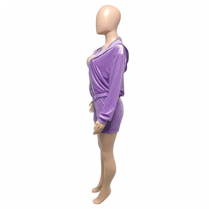 (Real Image)2022 Styles Women Fashion Summer TikTok&Instagram Styles Solid Color Velvet Three Piece SuitSKU: #OU0121-3