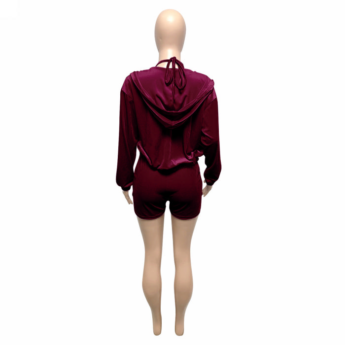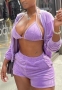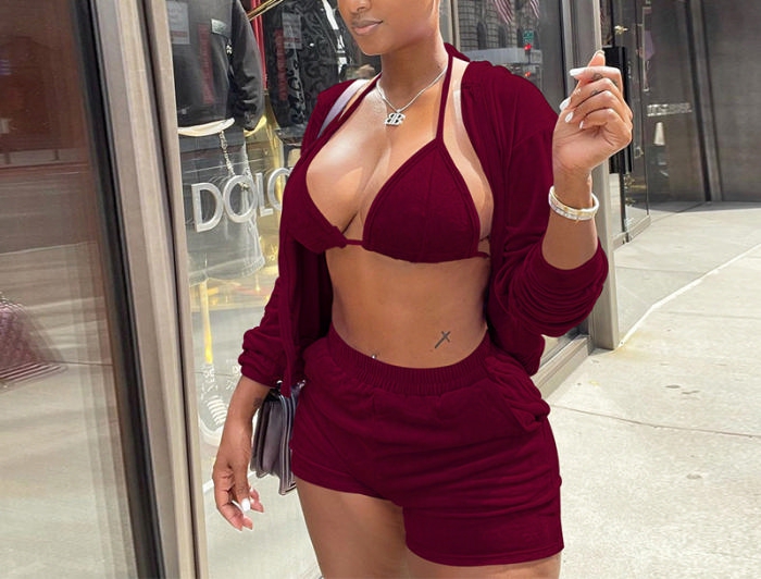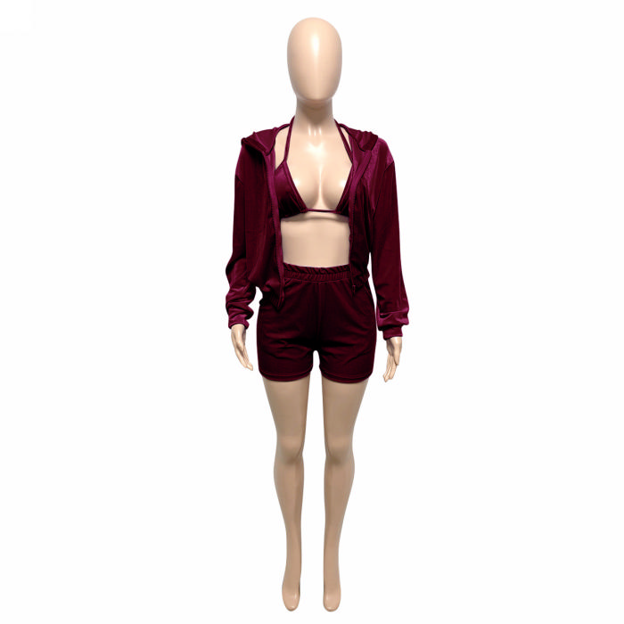 (Real Image)2022 Styles Women Fashion Summer TikTok&Instagram Styles Solid Color Velvet Three Piece SuitSKU: #OU0121-2