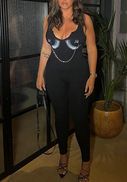 (Real Image)2022 Styles Women Fashion Summer TikTok&Instagram Styles Strap Print Eye JumpsuitSKU: #CF59315-1