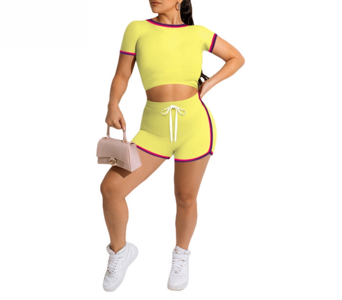 (Real Image)2022 Styles Women Fashion Summer TikTok&Instagram Styles Striped Short Two Piece SuitSKU: #XF14903-1