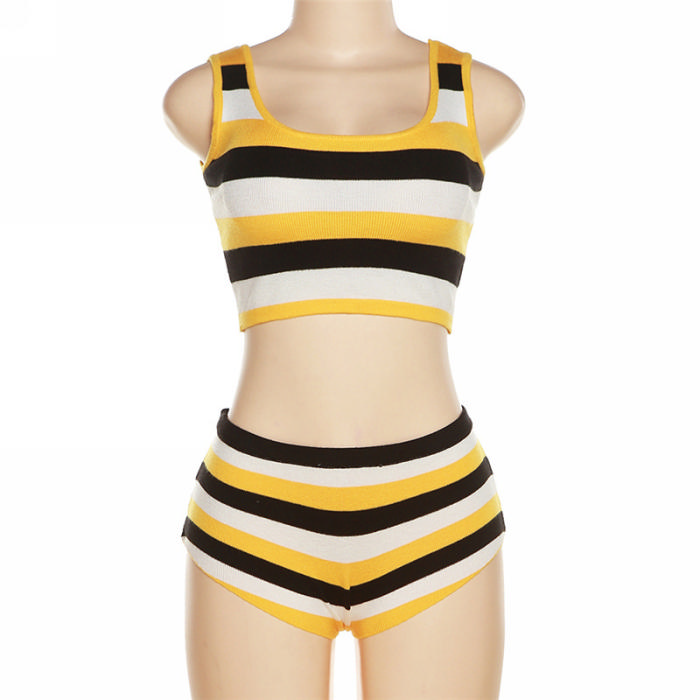 (Real Image)2022 Styles Women Fashion Summer TikTok&Instagram Styles Striped Short Two Piece SuitSKU: #CF48784-1