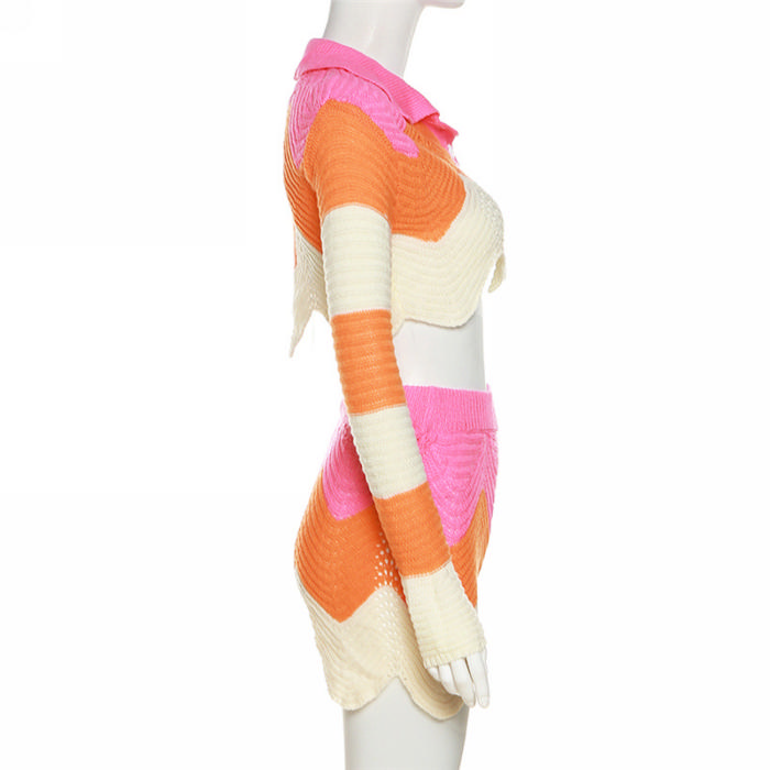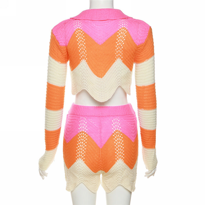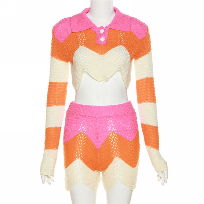 (Real Image)2022 Styles Women Fashion Summer TikTok&Instagram Styles Sweater Contrast Color Short Two Piece SuitSKU: #CF48785-1