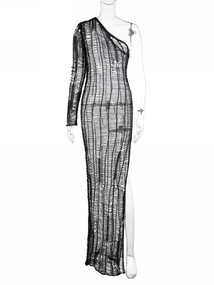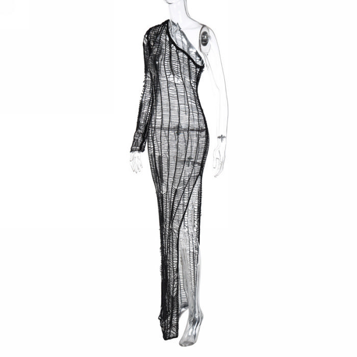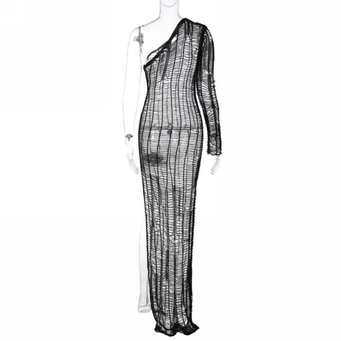 (Real Image)2022 Styles Women Fashion Summer TikTok&Instagram Styles Sweater Hollow Maxi DressSKU: #CF22758-1