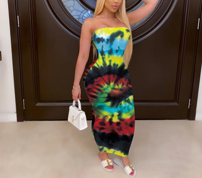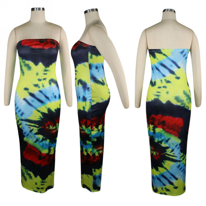 (Real Image)2022 Styles Women Fashion Summer TikTok&Instagram Styles Tube Print Maxi DressSKU: #XF13436-2