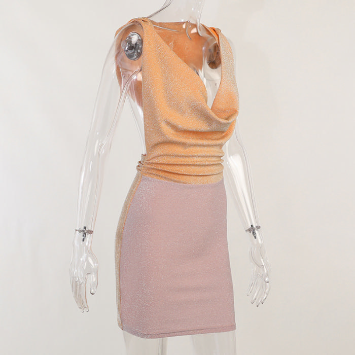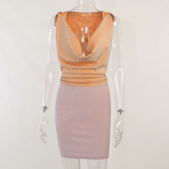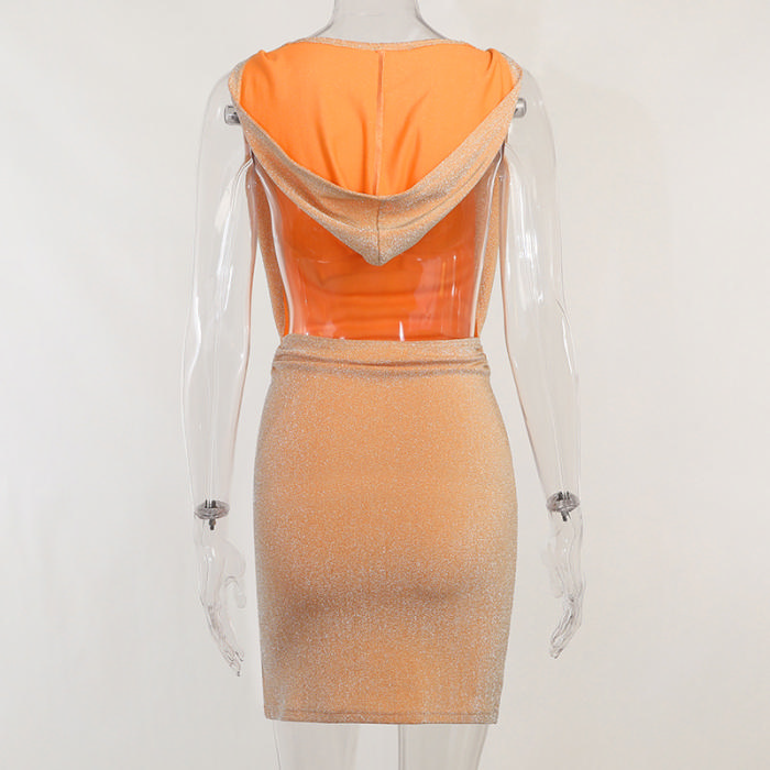 (Real Image)2022 Styles Women Fashion Summer TikTok&Instagram Styles Velvet Contrast Color Hoodie Mini DressSKU: #XF92639-1