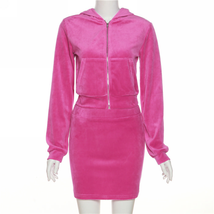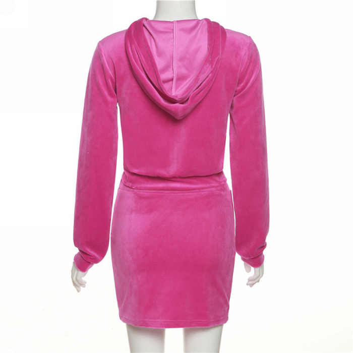 (Real Image)2022 Styles Women Fashion Summer TikTok&Instagram Styles Velvet Front Zipper Two Piece DressSKU: #CF48819-1