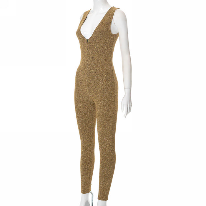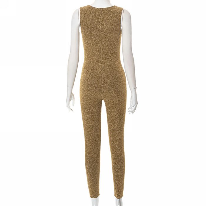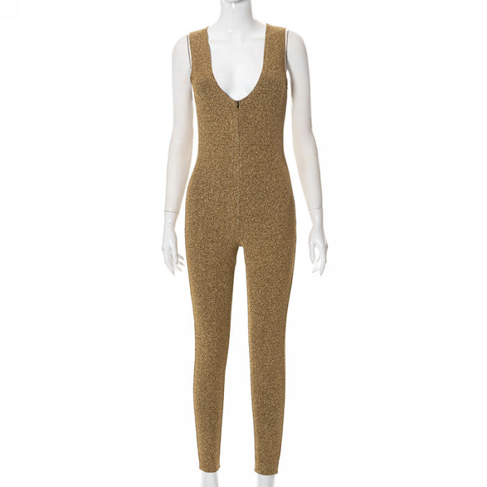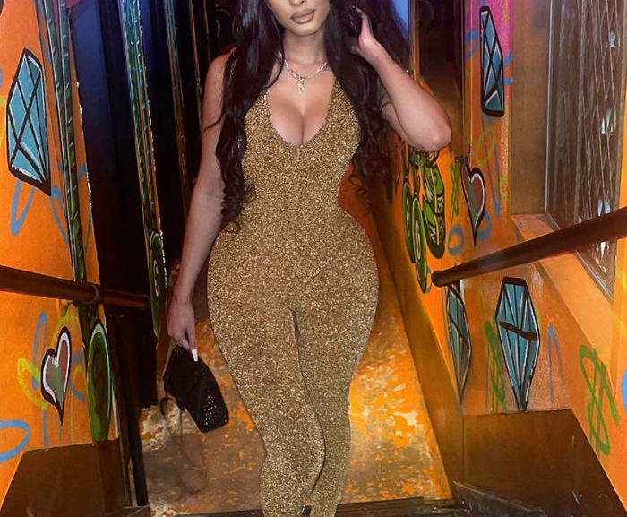 (Real Image)2022 Styles Women Fashion Summer TikTok&Instagram Styles Velvet Gold JumpsuitSKU: #CF47152-1