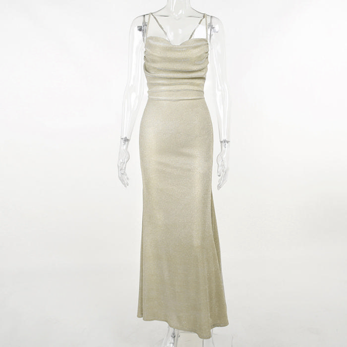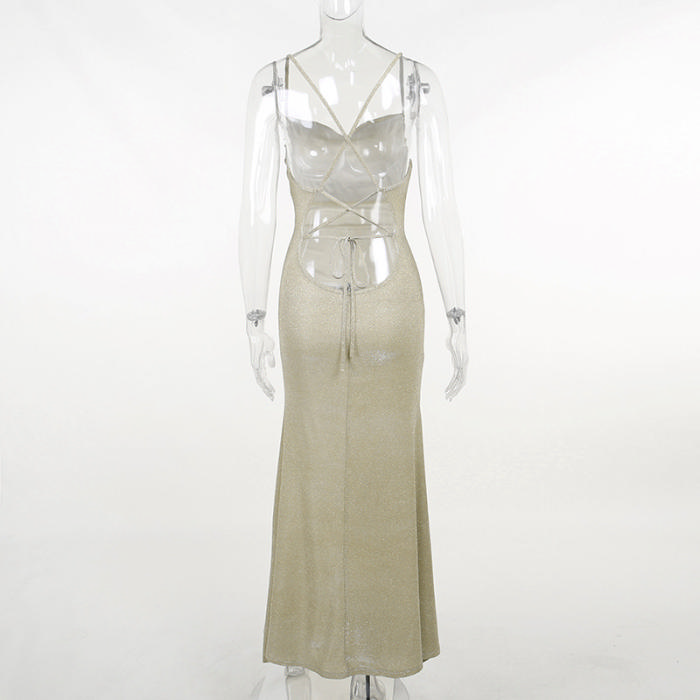 (Real Image)2022 Styles Women Fashion Summer TikTok&Instagram Styles Velvet High Split Backless Maxi DressSKU: #XF92675-1