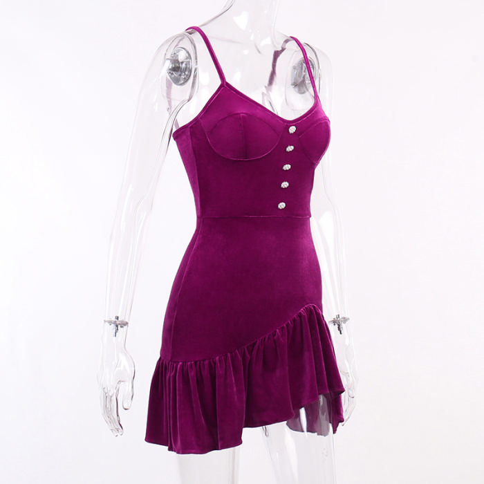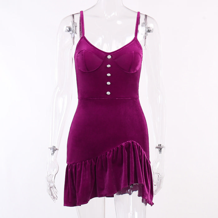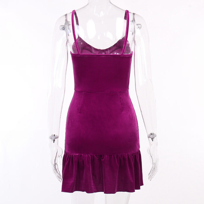 (Real Image)2022 Styles Women Fashion Summer TikTok&Instagram Styles Velvet Strap Hem Mini DressSKU: #XF92659-1