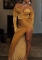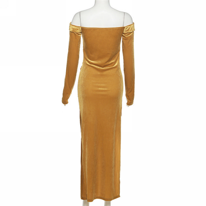 (Real Image)2022 Styles Women Fashion Summer TikTok&Instagram Styles Velvet Yellow Off Shoulder Split Maxi DressSKU: #CF48831-1