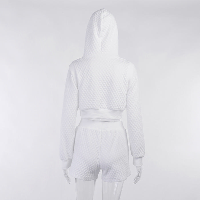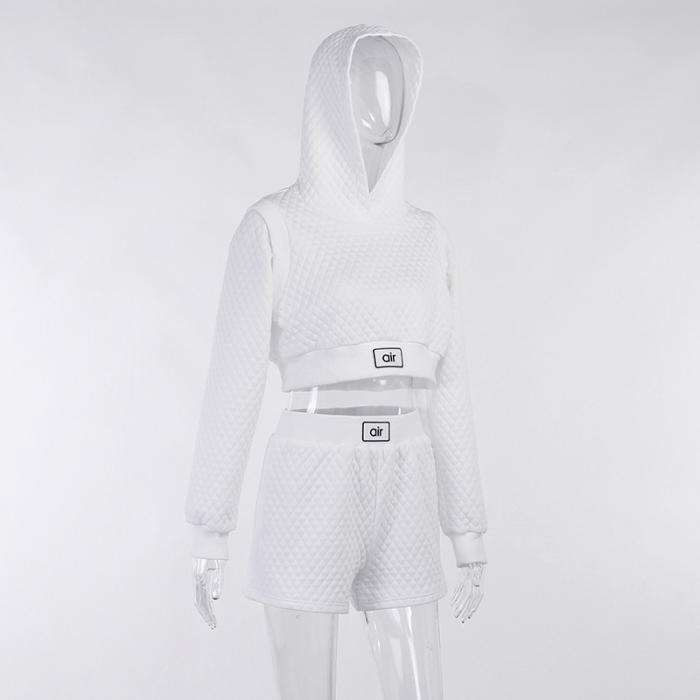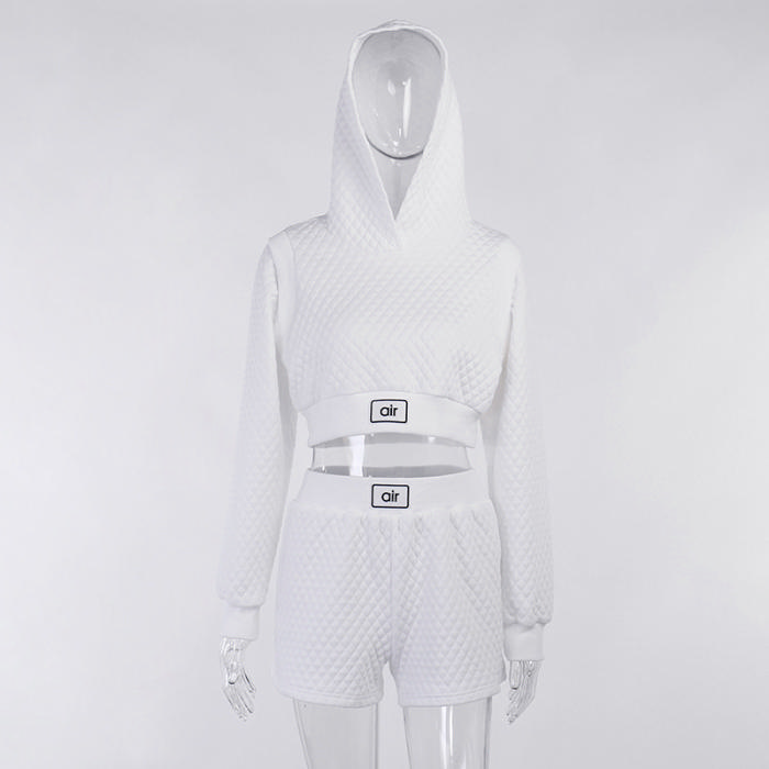 (Real Image)2022 Styles Women Fashion Summer TikTok&Instagram Styles White Hoodie Short Two Piece SuitSKU: #XF92627-1
