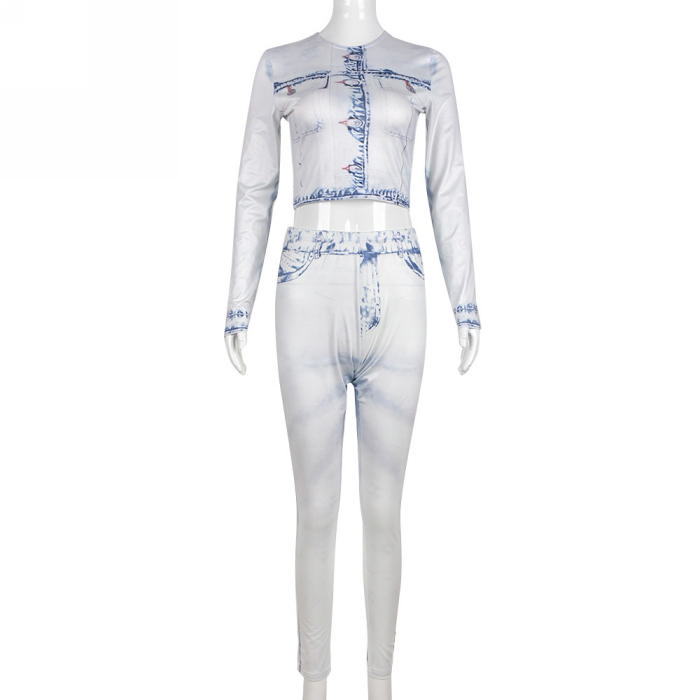(Real Image)2022 Styles Women Fashion Summer TikTok&Instagram Styles White Print Two Piece SuitSKU: #CF59274-1