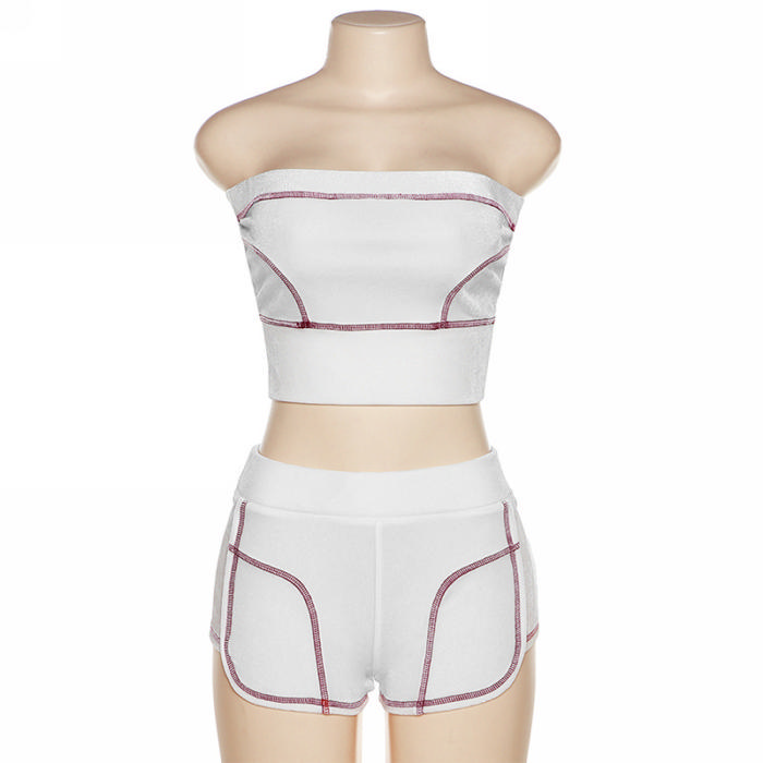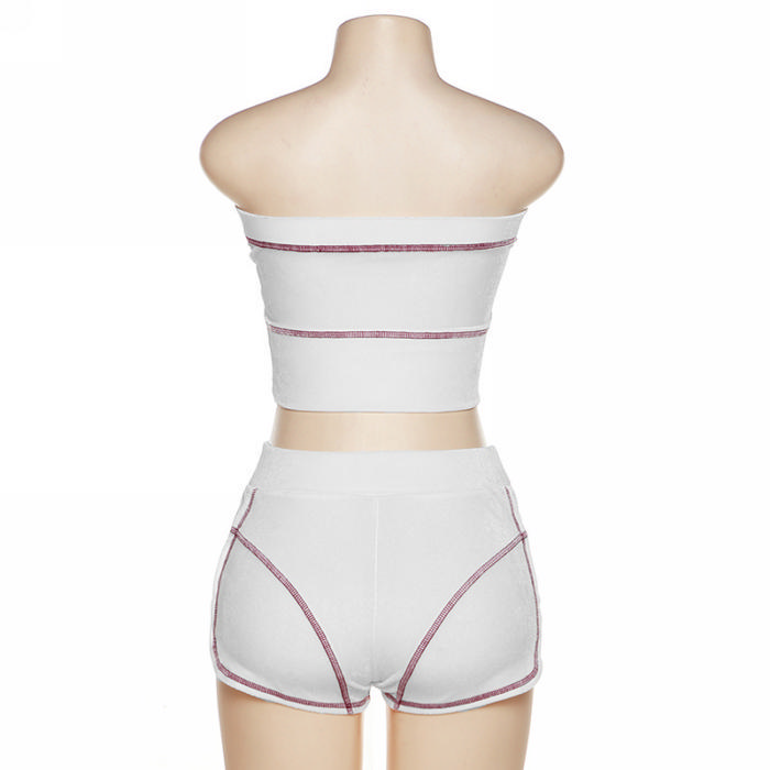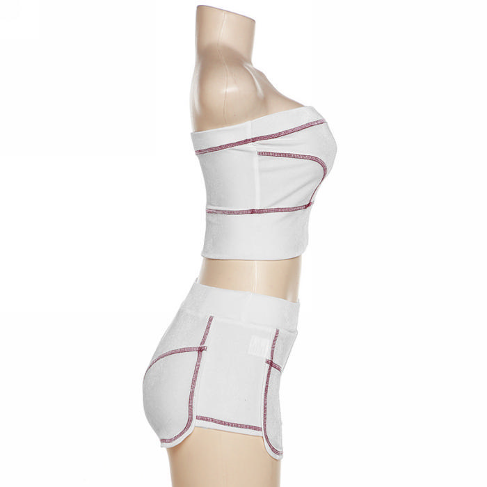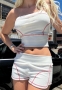 (Real Image)2022 Styles Women Fashion Summer TikTok&Instagram Styles White Short Two Piece SuitSKU: #CF49926-1