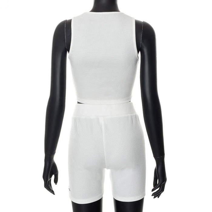 (Real Image)2022 Styles Women Fashion Summer TikTok&Instagram Styles White Short Two Piece SuitSKU: #CF47166-1