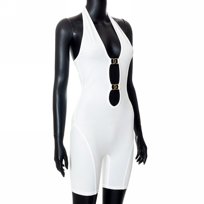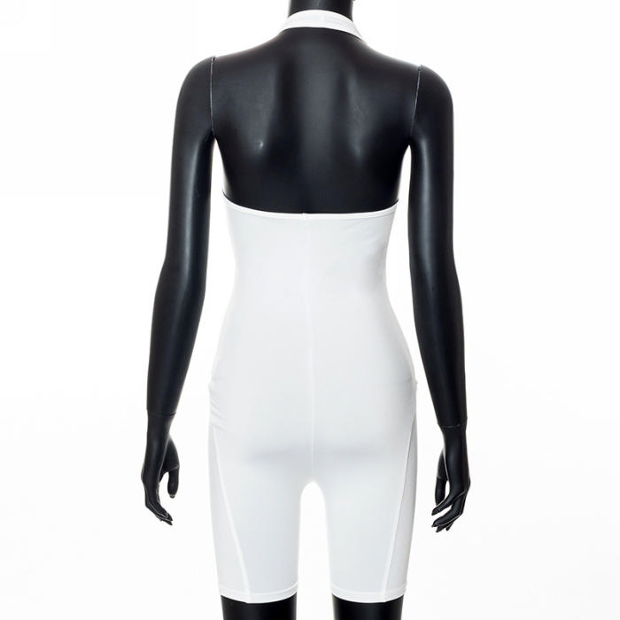 (Real Image)2022 Styles Women Fashion Summer TikTok&Instagram Styles White Strap Blackless RomperSKU: #CF47232-1