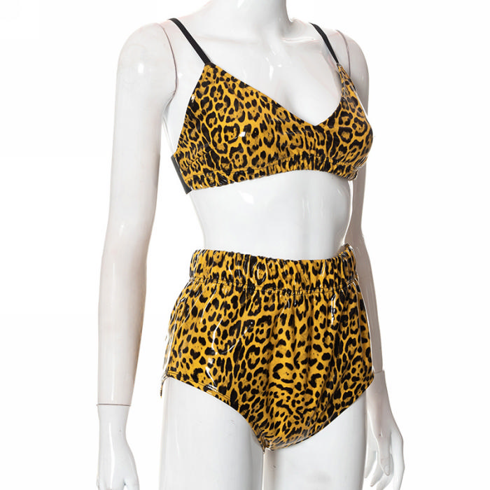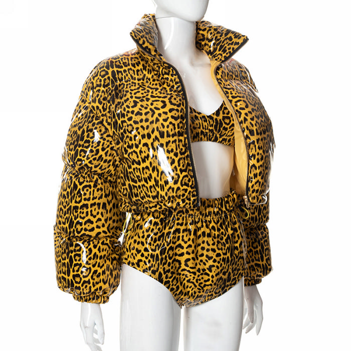 (Real Image)2022 Styles Women Fashion Summer TikTok&Instagram Styles Yeelow Leopard Coat+Short Two Piece SuitSKU: #CF47255-1