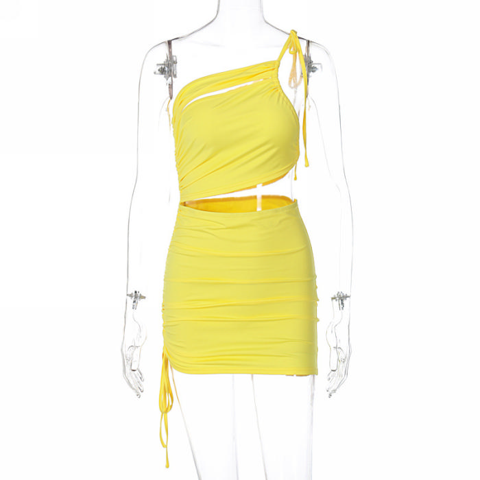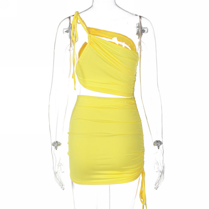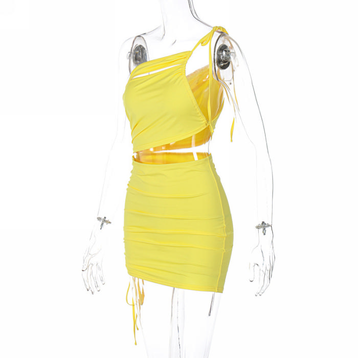(Real Image)2022 Styles Women Fashion Summer TikTok&Instagram Styles Yellow Backless Two Piece DressSKU: #CF22817-1