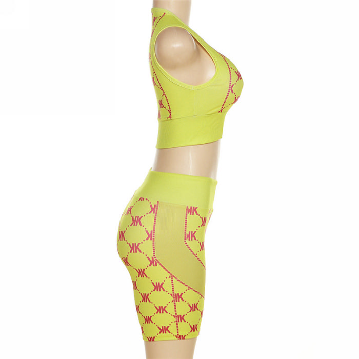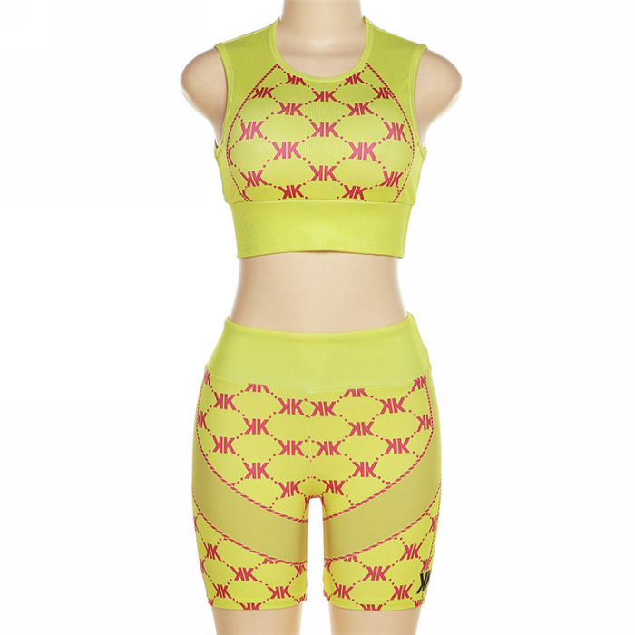 (Real Image)2022 Styles Women Fashion Summer TikTok&Instagram Styles Yellow Short Two Piece SuitSKU: #CF77043-1
