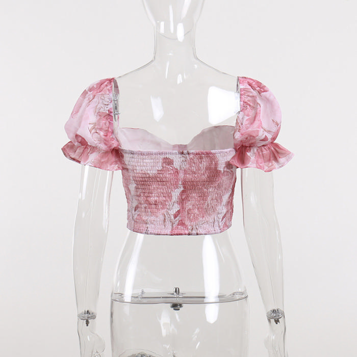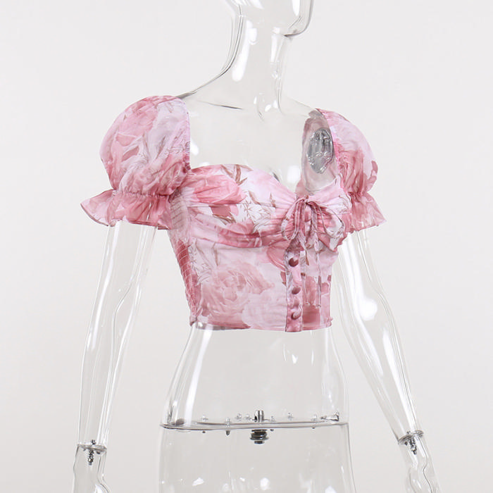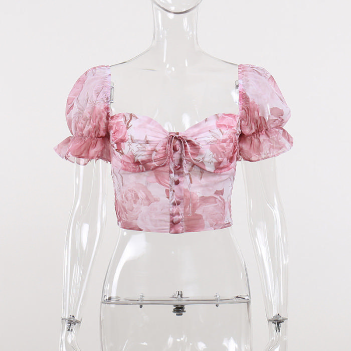 (Real Image)2022 Styles Women Fashion Summer TikTok&Instagram StylesChiffon Floral Puff Short Sleeve Tank TopsSKU: #XF92622-1