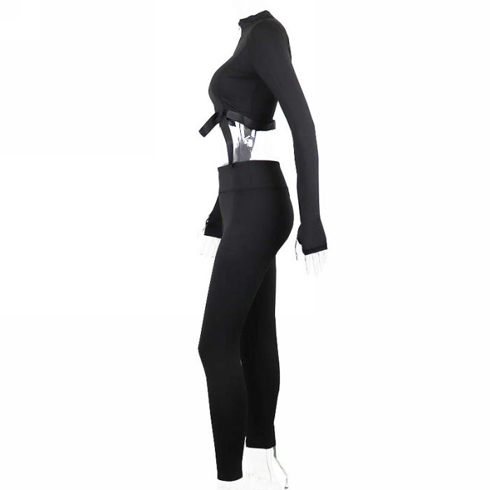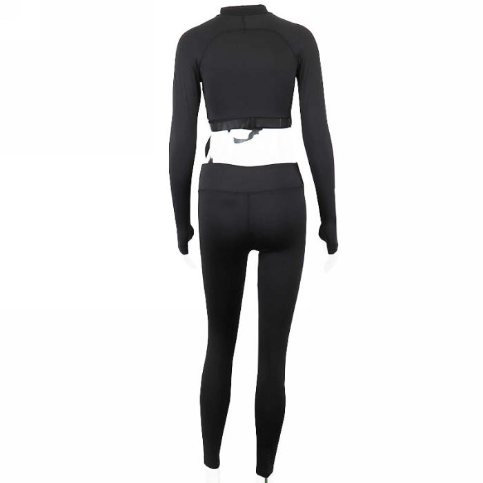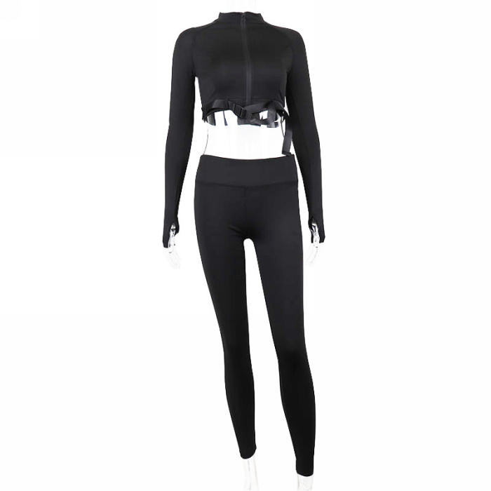 (Real Image)2022 Styles Women Sexy INS Styles Black Front Zipper Yoga Tracksuit SuitSKU: #CF67061-1