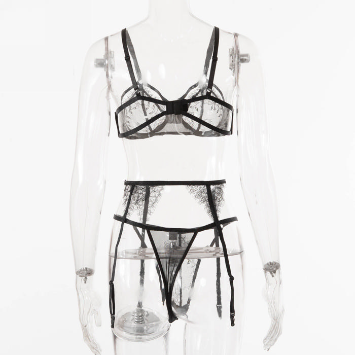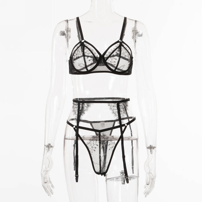 (Real Image)2022 Styles Women Sexy INS Styles Black Lace Bikini Set 3 Piece SuitSKU: #CF66012-1