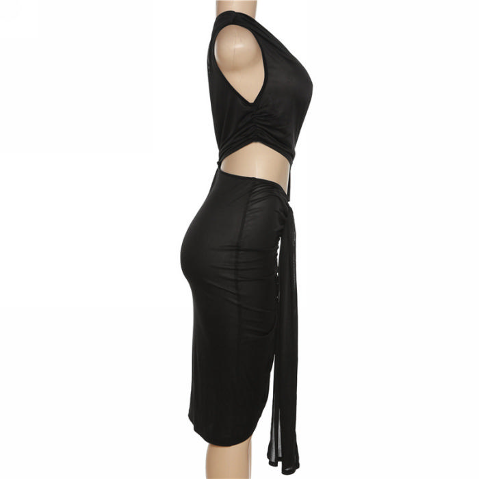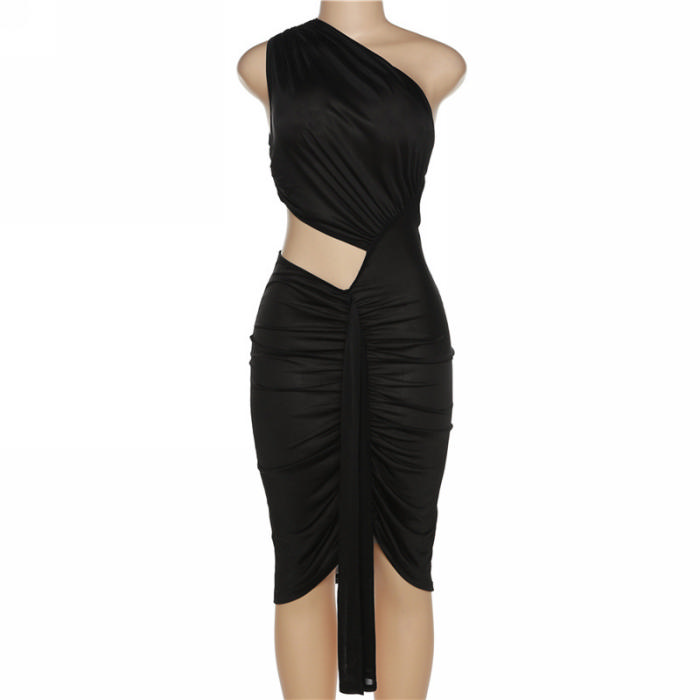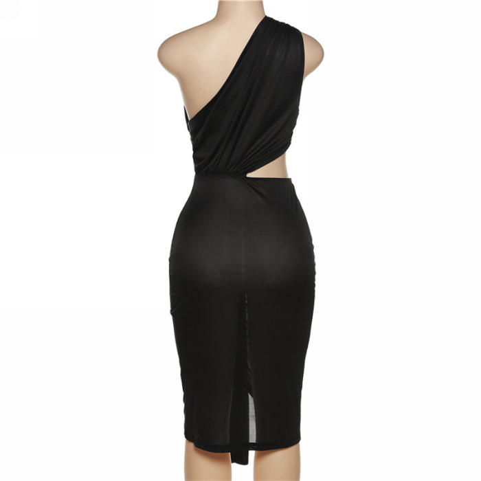 (Real Image)2022 Styles Women Sexy INS Styles Black Single Shoulder Cut Out Mini DressSKU: #CF48678-1