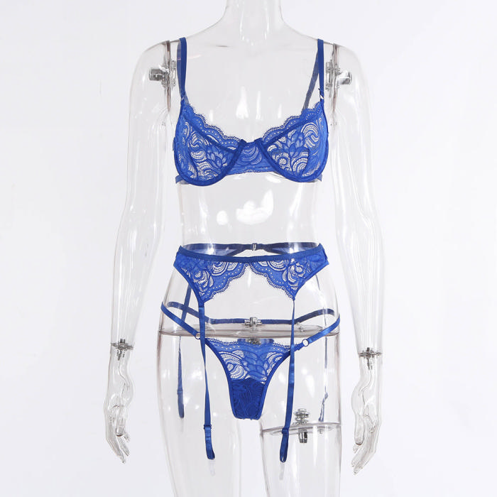 (Real Image)2022 Styles Women Sexy INS Styles Blue Lace Bikini Set 3 Piece SuitSKU: #CF66011-1
