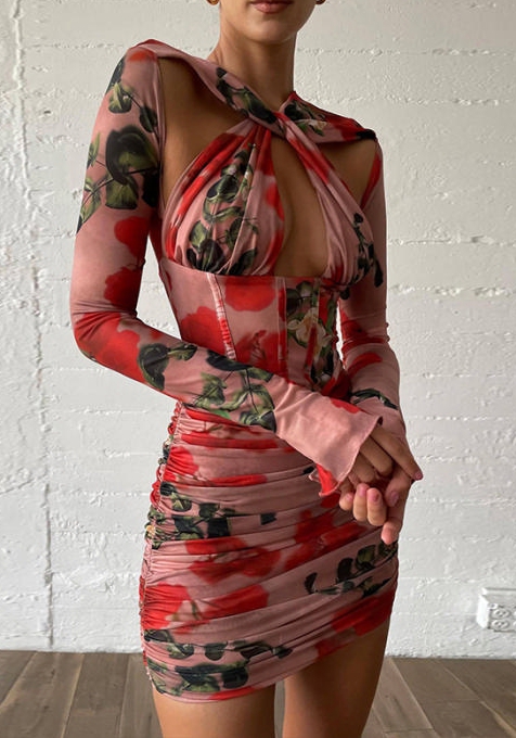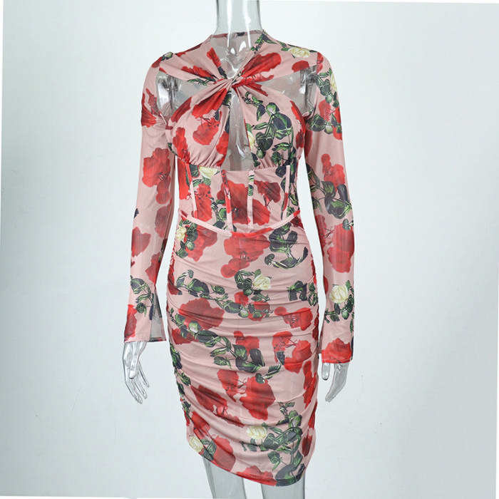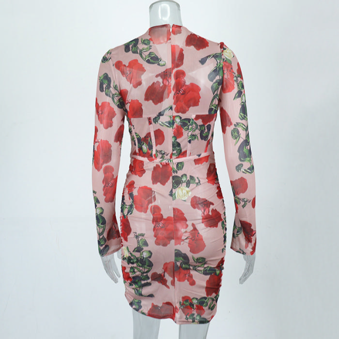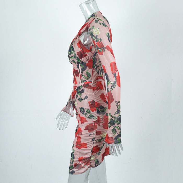 (Real Image)2022 Styles Women Sexy INS Styles Bohemian Floral Rose Long Sleeve Mini DressSKU: #CF67088-1