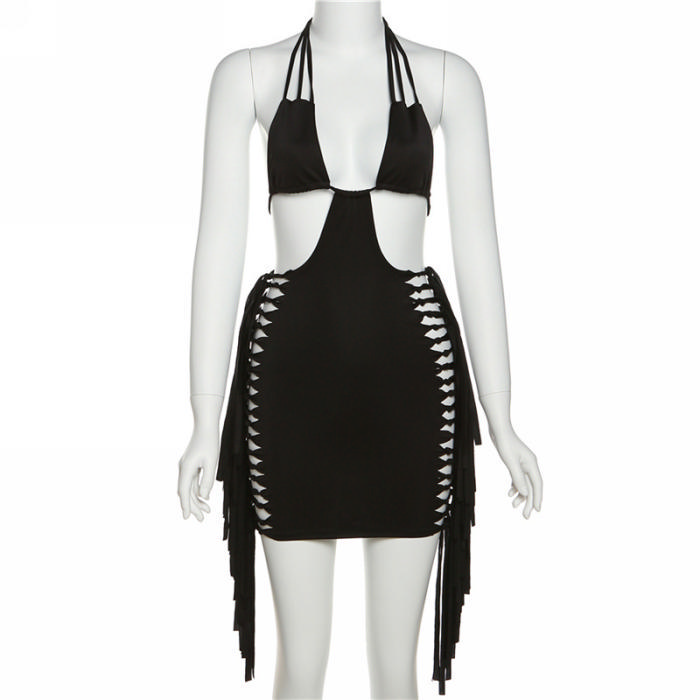 (Real Image)2022 Styles Women Sexy INS Styles Double Tassel Club DressSKU: #CF49657-1