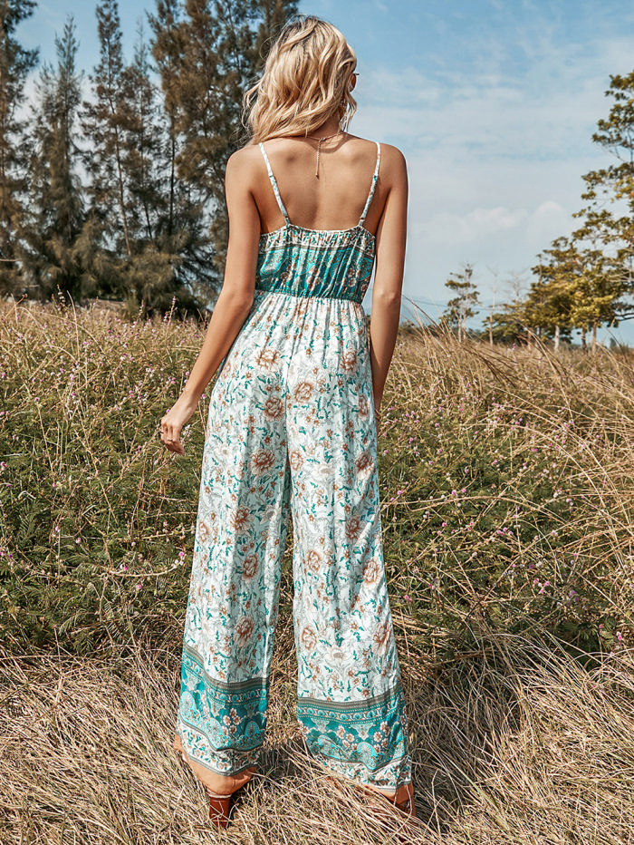 (Real Image)2022 Styles Women Sexy INS Styles Floral Bohemian JumpsuitSKU: #XF57418-1