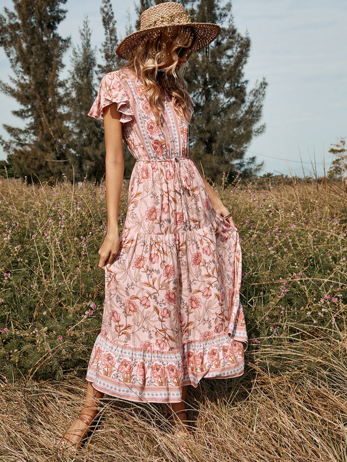 (Real Image)2022 Styles Women Sexy INS Styles Floral Bohemian Maxi DressSKU: #XF57375-1