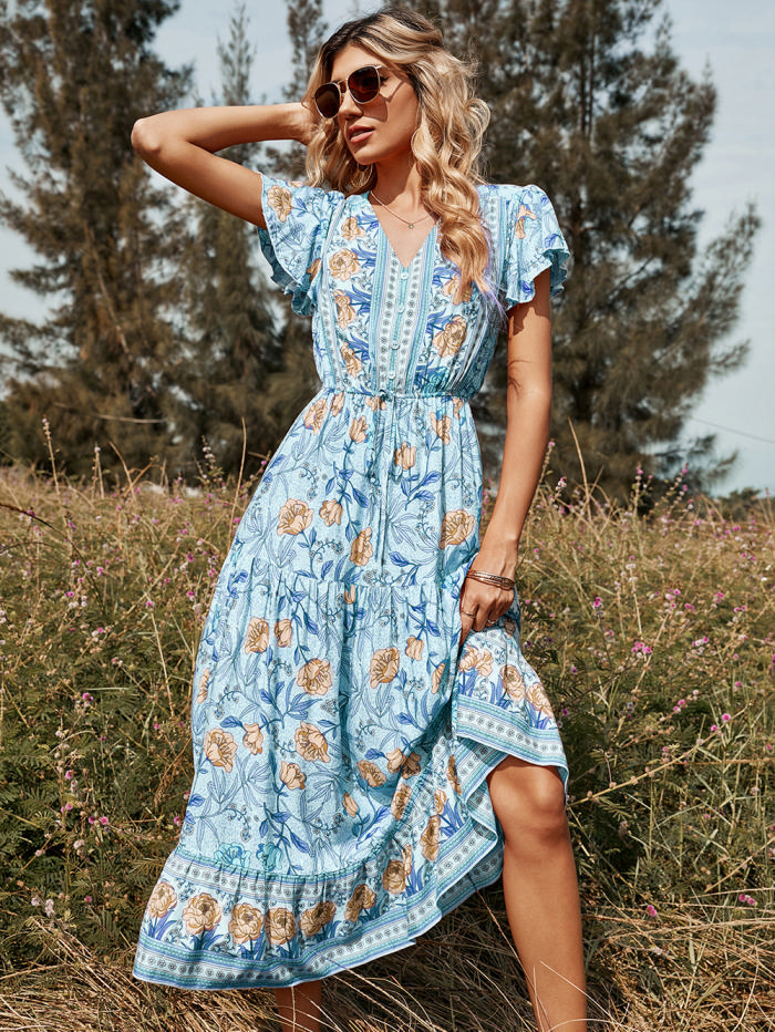(Real Image)2022 Styles Women Sexy INS Styles Floral Bohemian Maxi DressSKU: #XF57375-2