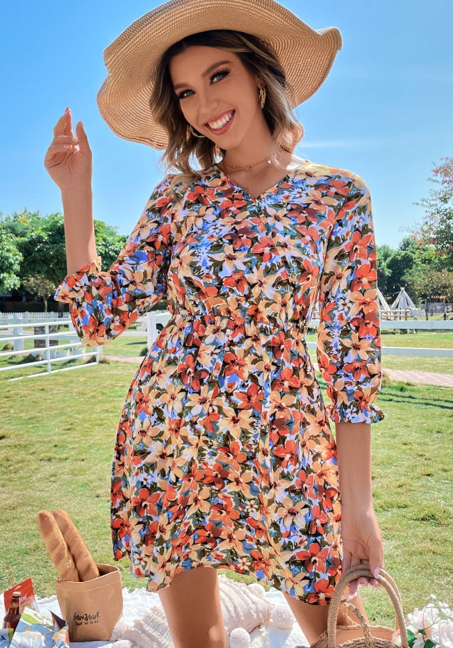 (Real Image)2022 Styles Women Sexy INS Styles Floral Bohemian Mini DressSKU: #CF65032-1