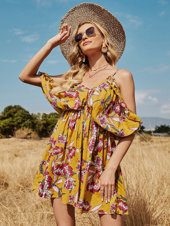 (Real Image)2022 Styles Women Sexy INS Styles Floral Bohemian Mini DressSKU: #XF57390-4