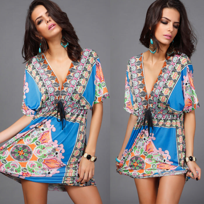 (Real Image)2022 Styles Women Sexy INS Styles Floral Bohemian Mini DressSKU: #XF57391-6