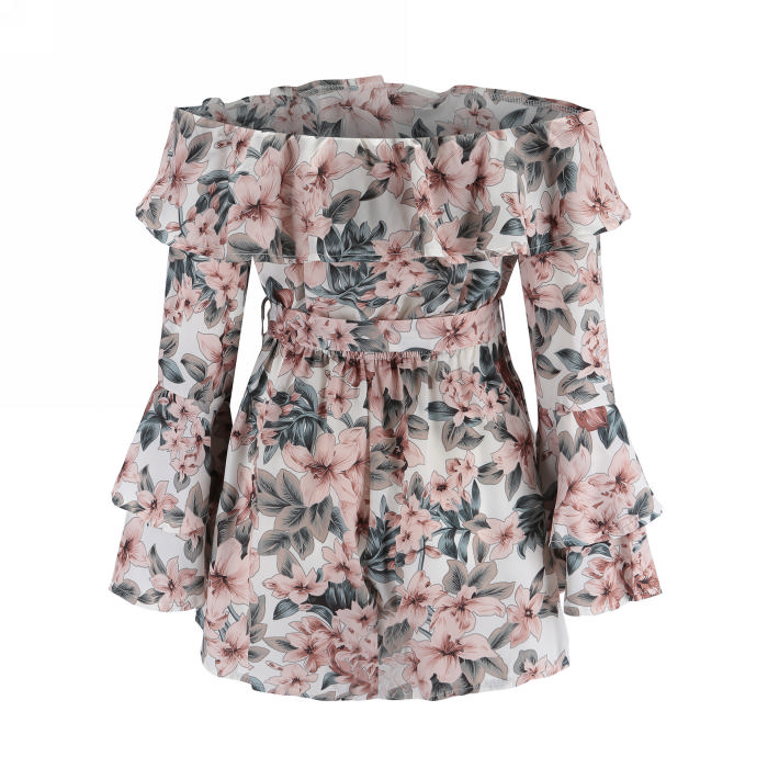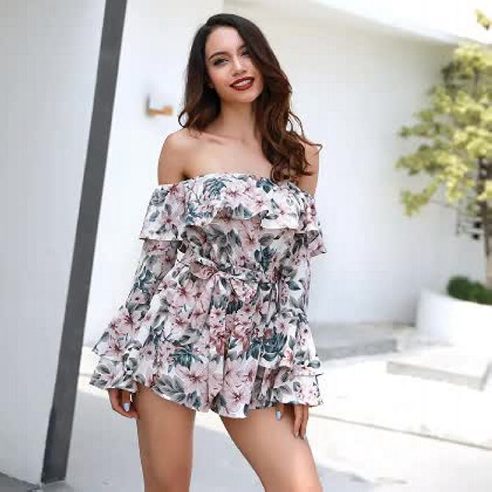 (Real Image)2022 Styles Women Sexy INS Styles Floral Bohemian Off Shoulder JumpsuitSKU: #CF65002-1
