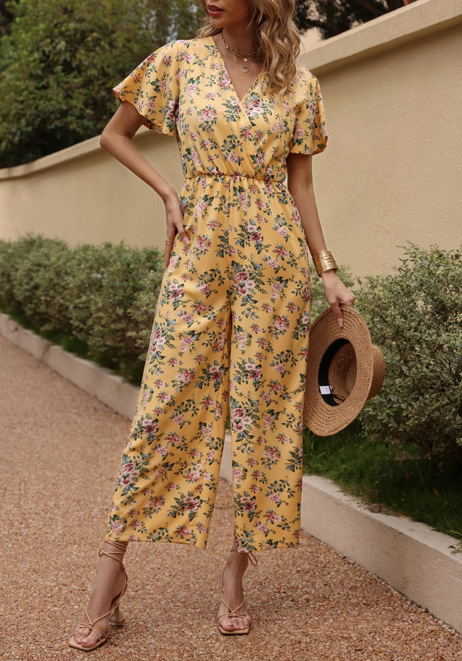 (Real Image)2022 Styles Women Sexy INS Styles Floral Bohemian Short Sleeve JumpsuitSKU: #CF65003-1