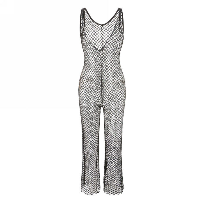 (Real Image)2022 Styles Women Sexy INS Styles Hollow Net JumpsuitSKU: #CF65045-1
