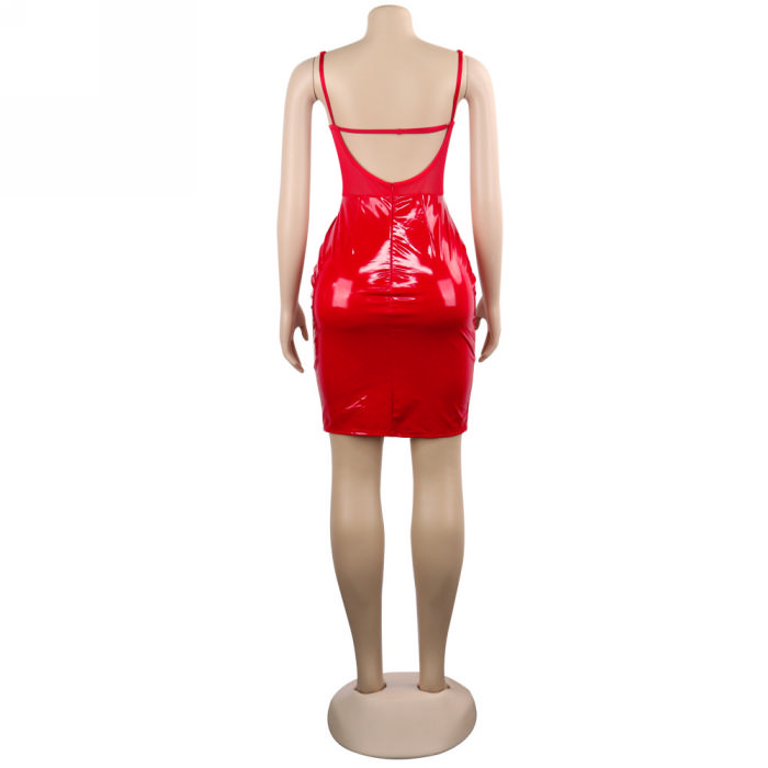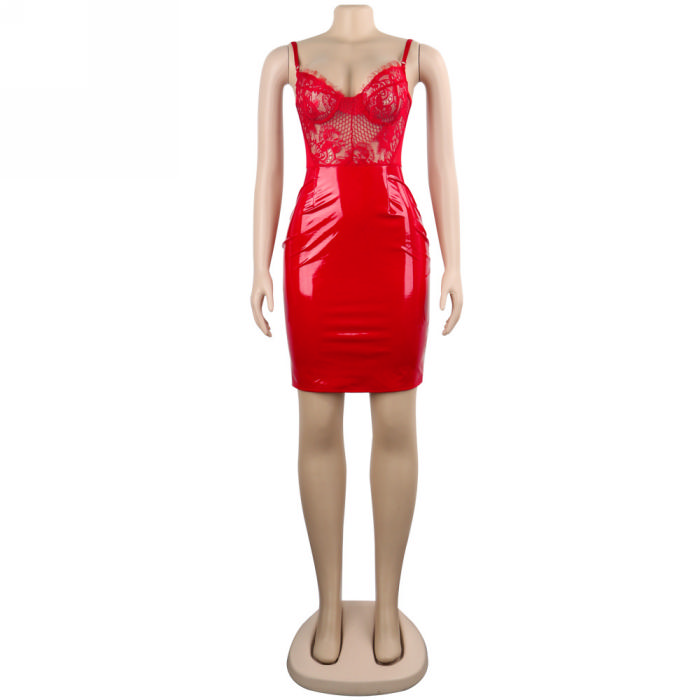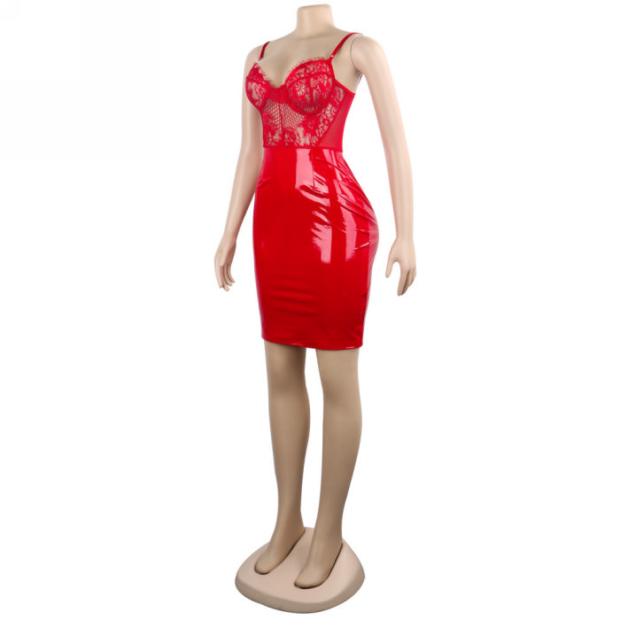 (Real Image)2022 Styles Women Sexy INS Styles Lace PU Club DressSKU: #XF27230-1