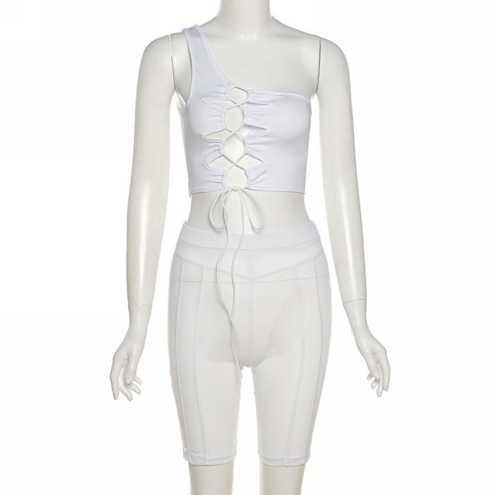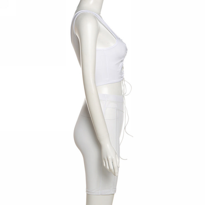 (Real Image)2022 Styles Women Sexy INS Styles Lace Up Short Two Piece SuitSKU: #CF49651-1